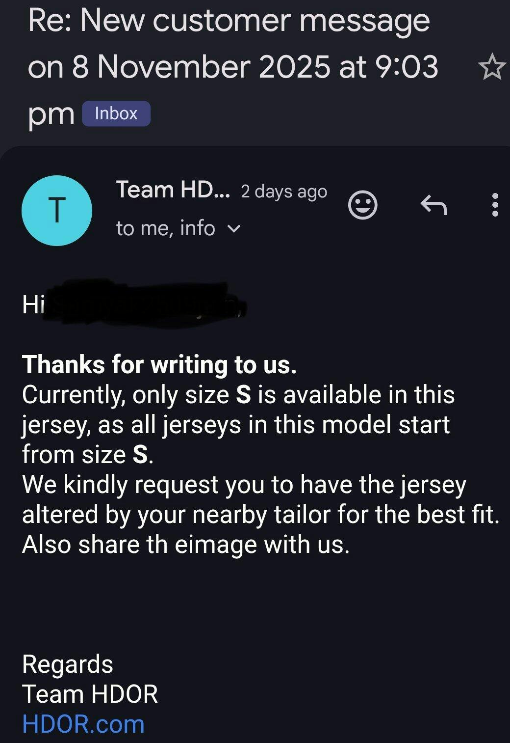 I received a jersey with manufacturing defect where the pockets were stitched on backside. The jersey was smelling very bad and was giving impression of a used one. I mailed them multiple times for exchange but they refused it giving multiple excuses and said me to get it stitched by a local tailor. Really bad customer service and they are not even giving an exchange despite their policy of returns on manufacturing defect.